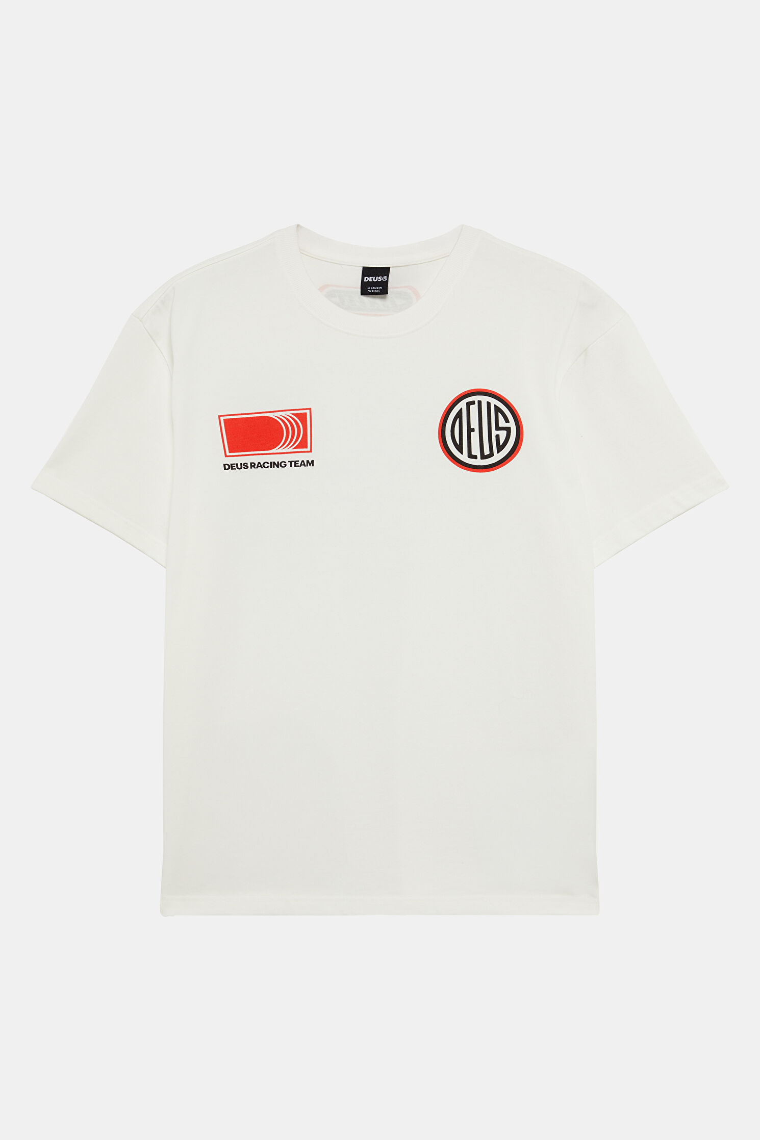Relax Kalıp Beyaz Bisiklet Yaka Baskılı T-Shirt