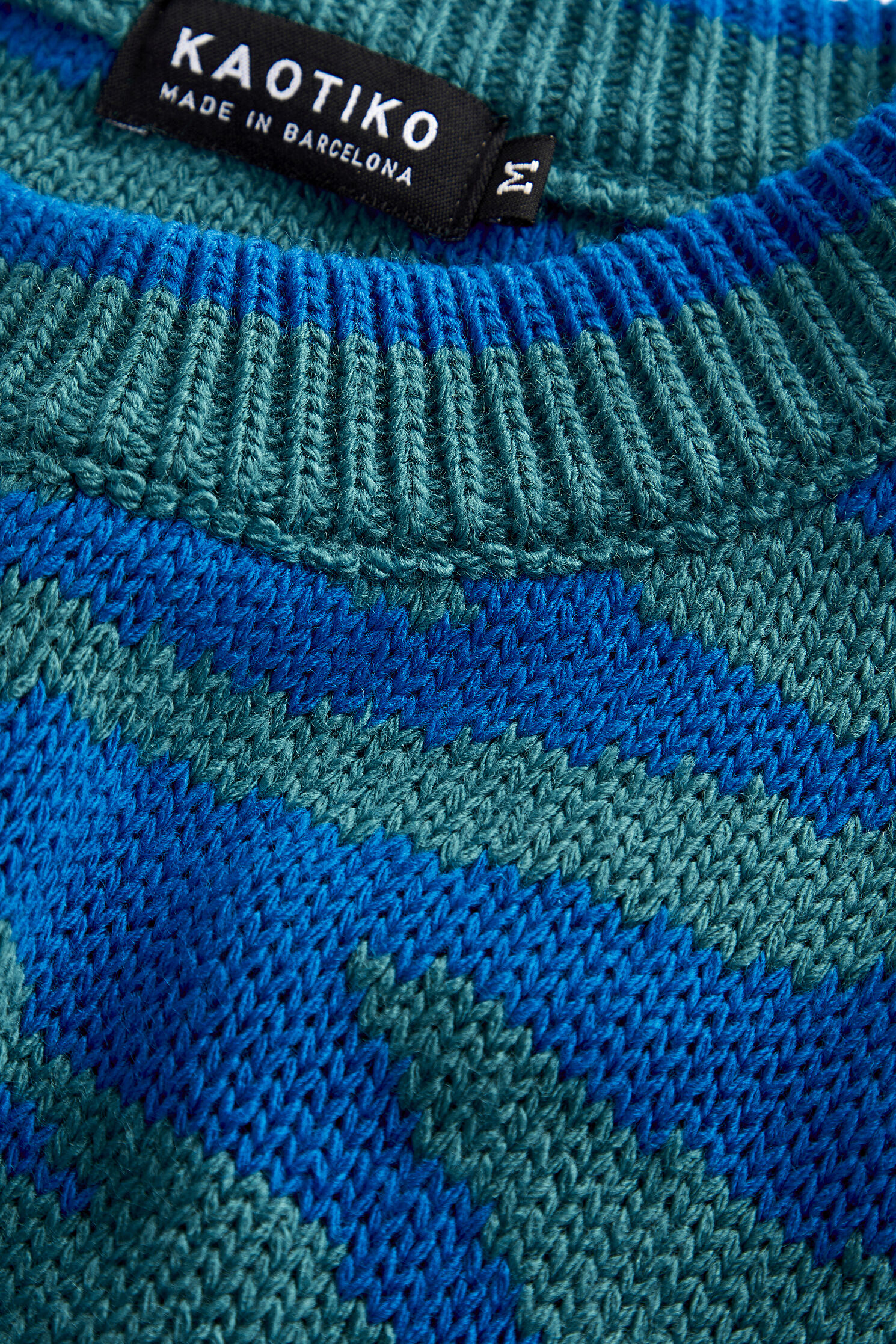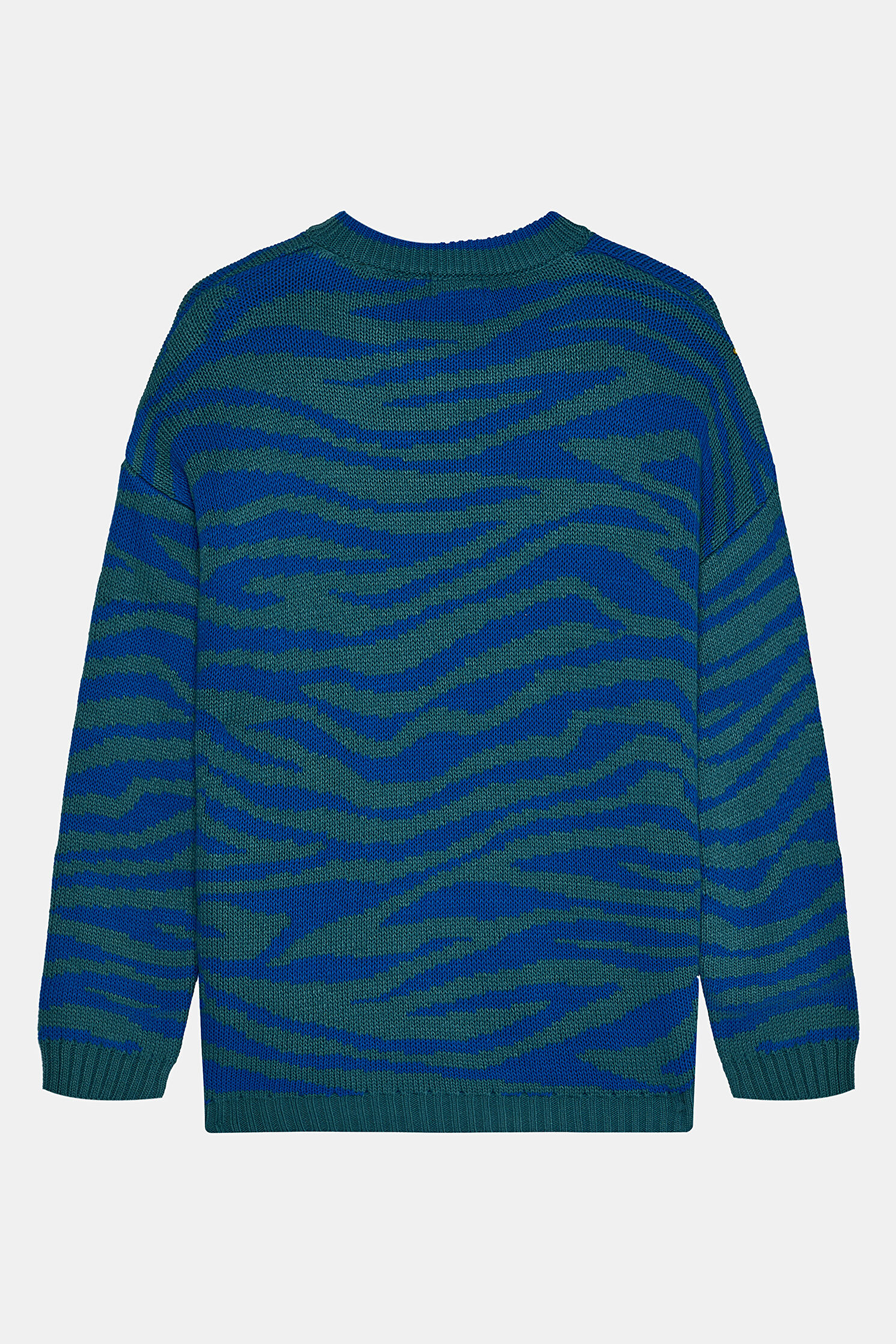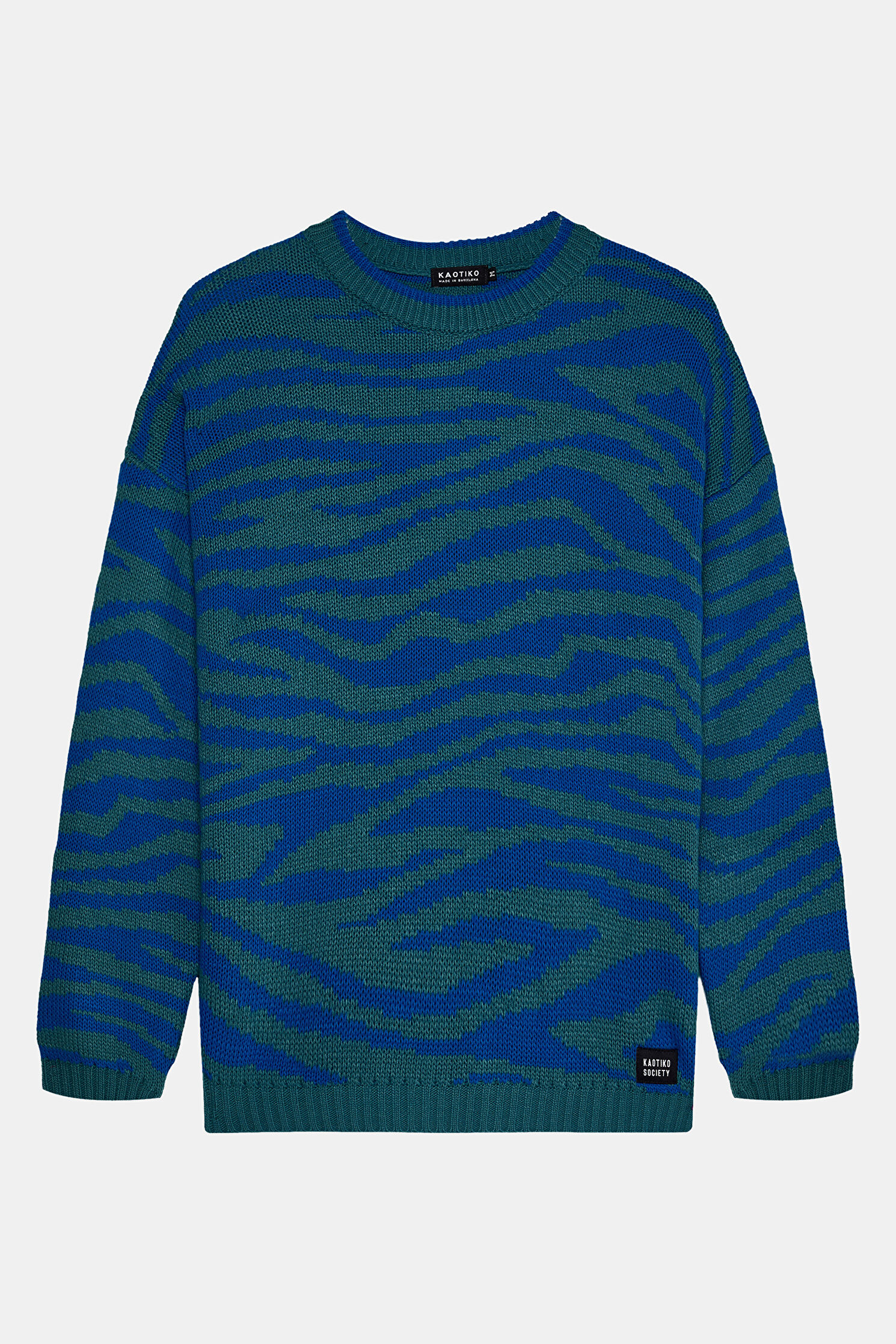 Bisiklet yakaya ve uzun kollara sahip olan Kaotiko kazak, kontrast renkli animal desenleri ve relax kalıp formu ile dikkat çekiyor.