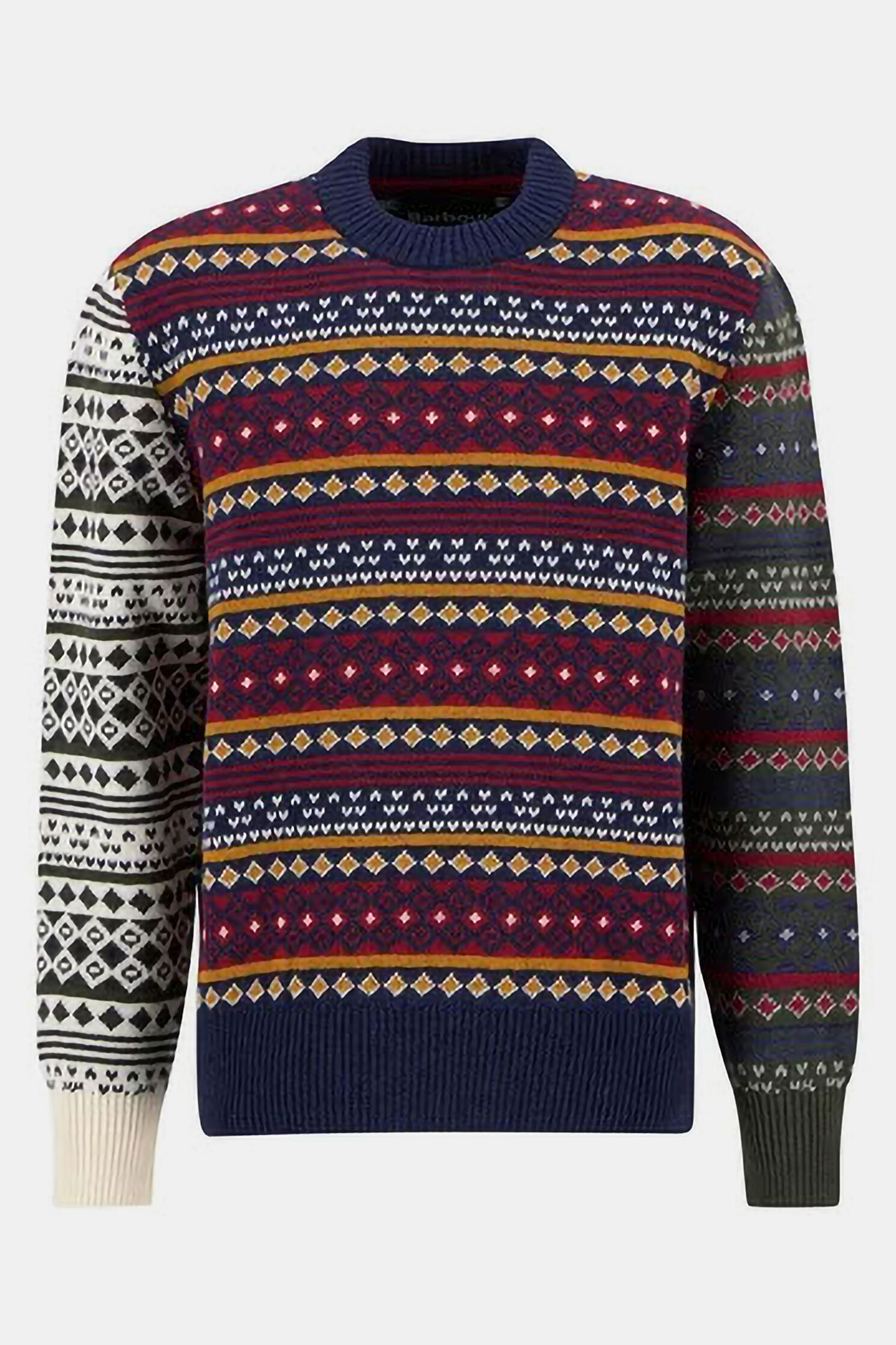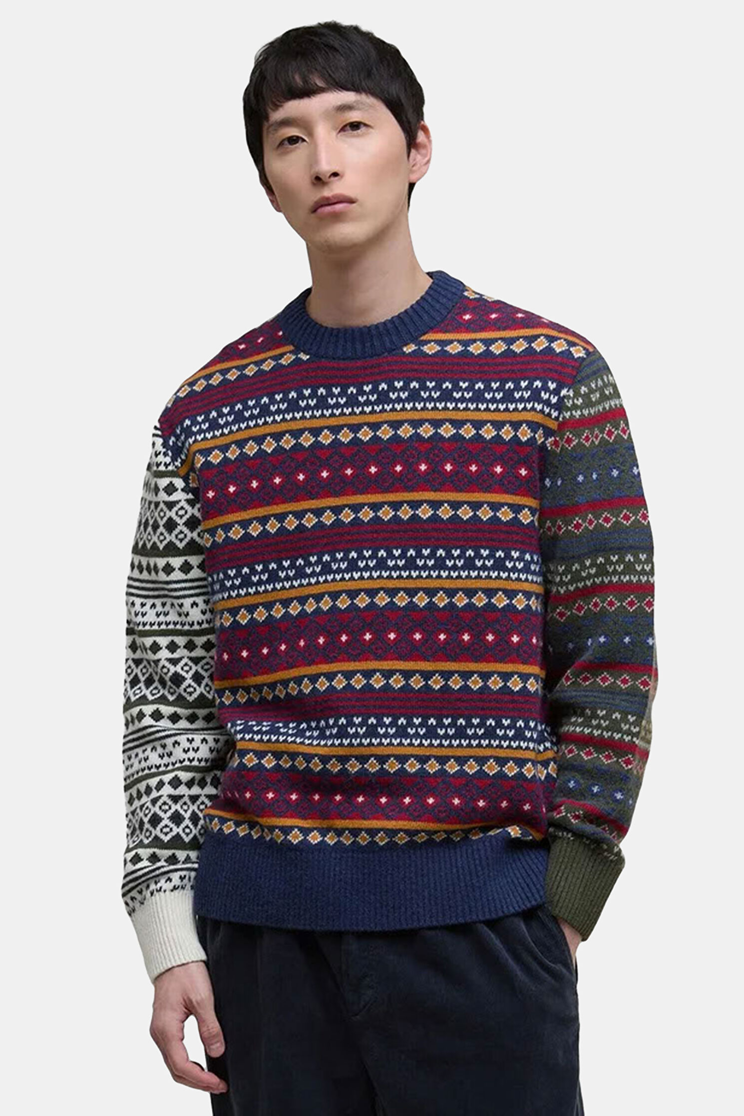 Patchwork Fair Isle Crew Neck Desenli Pamuk/Yün Triko Kazak